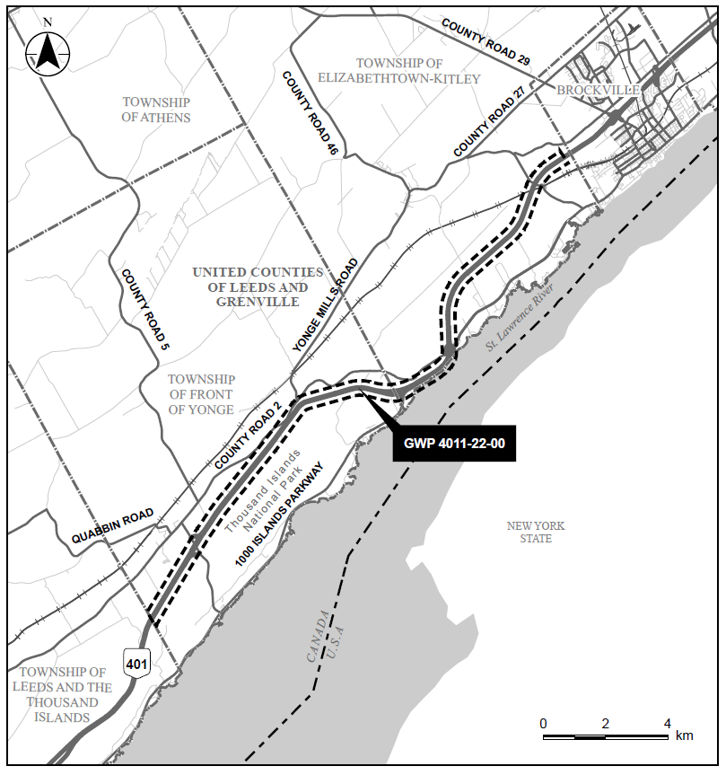 Welcome to the Highway 401 Planning Study from Mallorytown to Brockville in the United Counties of Leeds and Grenville. The Ontario Ministry of Transportation (MTO) has retained Stantec Consulting Ltd. to undertake a Preliminary Design, and Class Environmental Assessment (Class EA) Study on Highway 401 for the replacement and rehabilitation of bridges and culverts, interchange modifications, and identifying the future Highway 401 footprint for an interim six lanes and ultimate eight lanes, from 2.8 km west of Mallorytown Road Interchange to 2.1 km west of Stewart Boulevard interchange (approximately 21.6 km).